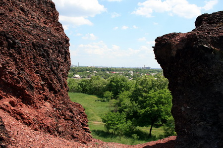 Между рогов нашего замечательного юбилейного террикона можно поймать концентрированные куски пейзажа. Вот, например, дерево и еле видный на горизонте завод «Сармат».